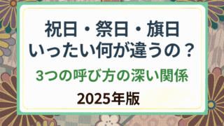 「祝日」と「祭日」は同じ意味ではありません。この記事では、祝日と祭日の違い、今も祭日に由来する祝日一覧、そして「旗日(はたび)」という言葉の意味や使われなくなった理由をわかりやすく紹介します。子どもに説明できるまとめ付き。